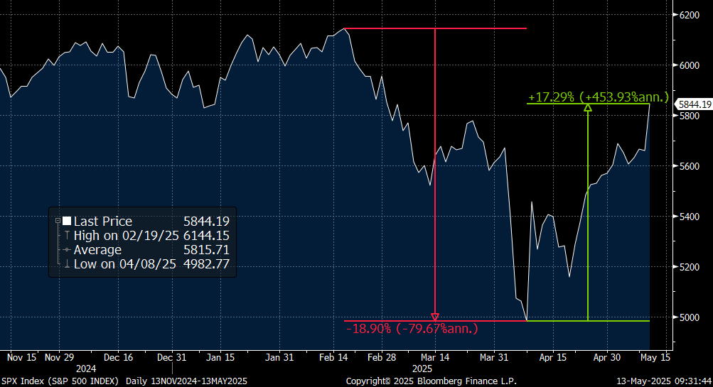Well, the market didn’t wait. April saw a sharp -13% drop, followed by a full rebound as Trump changes tone making the April 2nd “liberation day” sell-off, feel like a fever dream.