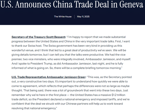 These two points from Bessent’s comments at the press conference in Geneva, is very telling. There’s room for a grand deal.