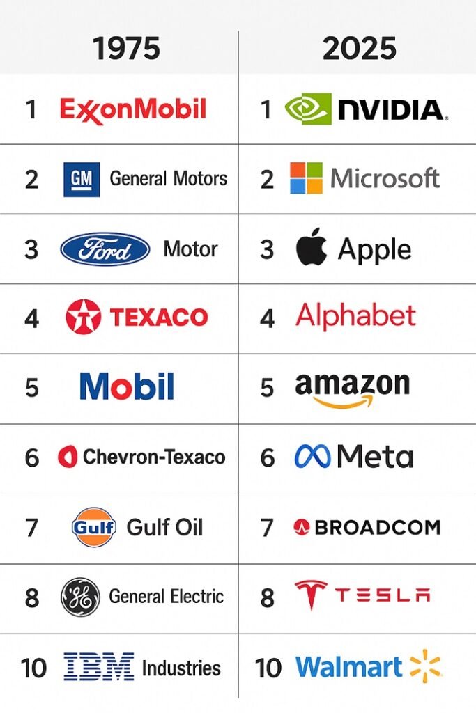 From Oil Titans to Tech Giants: Top 10 US Companies, 1975 vs 2025